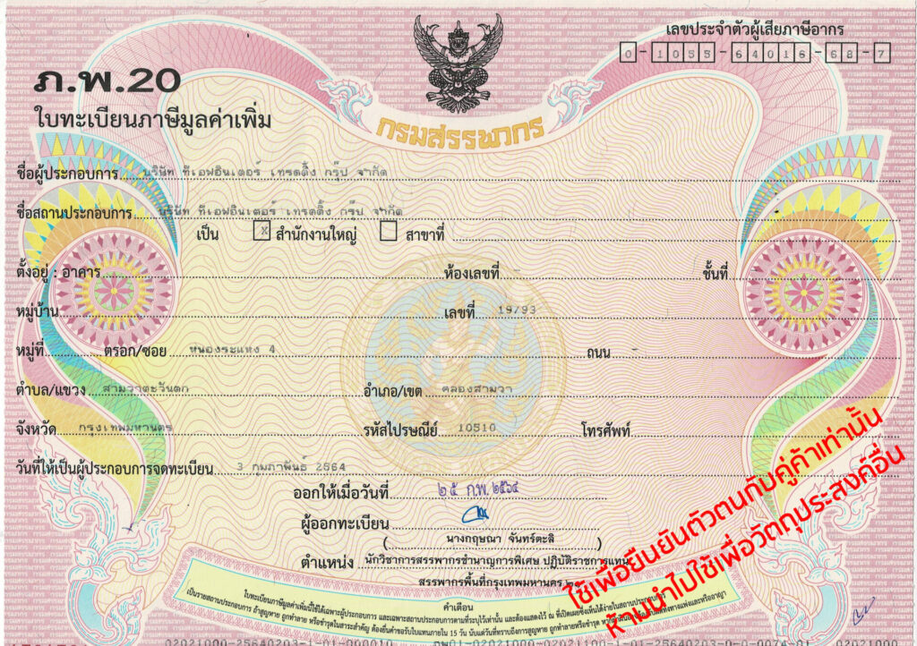 เลขทะเบียนนิติบุคคล: 0105564016687