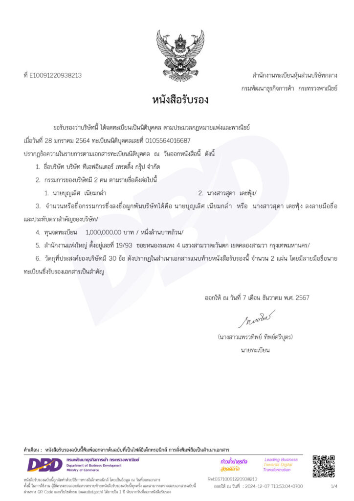 • จดทะเบียนบริษัท อย่างถูกกฏหมาย มีตัวตนจริง ตรวจสอบได้